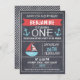 O convite de aniversário náutico deste rapaz apresenta um barco a vela e duas âncoras num fundo de chalkboard digitalizado. A design inclui também uma fronteira de linha branca e divisores. A fotografia do seu filho aparece no lado direito do convite dentro de uma borda de quadro. Este convite é influenciado pelo estilo popular de chalkboard e arte de stencil. Ele está pronto para ser personalizado e é ideal para alguém que gosta de convites de chalkboard e está procurando pelo convite de festas de primeiro aniversario náutico de um garoto. Está pronto para você personalizar.