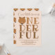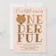 Um primeiro convite de aniversário para bebês. Este convite é castanho e castanho claro com a palavra "Maravilhoso" estilizada para incluir esta nova era e uma ilustração de rosto de urso como primeira letra. Simplesmente, personalize este convite, adicione-o ao seu carrinho e feliz aniversário ao seu maravilhoso bebê! Design de Feriado do primeiro aniversario de Convite para | ©Melissa Patton - Artista/Ilustrador