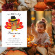 Celebre seu dia especial com nosso encantador convite de aniversário temático de peru, apresentando um adorável peru-aquarela com folhas coloridas de outono. Este design encantador captura a essência do outono e a alegria da infância, fazer a forma perfeita de convidar amigos e família para uma celebração memorável. Com sua imaginação caprichosa e cores quentes, esse convite dá o tom para um encontro festivo cheio de amor e riso.