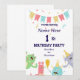 Celebre o seu grande marco com este adorável convite para primeiros aniversarios! Perfeito para um menino ou menina, este convite personalizável permite que você adicione o nome do seu filho, aniversário, detalhes da festa e uma mensagem pessoal. Design brilhante, colorido e divertido para combinar com qualquer tema de primeiro aniversário. Recursos: texto e cores totalmente personalizáveis Tamanho de download impresso ou digital: 5 x 7 polegadas (editável no Zazzle) Perfeito para chás de fraldas ou primeiros aniversarios Torne o primeiro aniversário do seu bebê inesquecível com este charmoso convite!