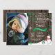 Convite para primeiro aniversario Rustic Winter Onederland com foto personalizada. Snowman e Penguin. Floco de neve verde e branco. Primeiro Aniversário. Menino ou Garota 1rua Convidam. Fundo Rustic Wood. Preto & Branco. Para mais personalização, clique no botão "Personalizar" e use nossa ferramenta de design para modificar este modelo.