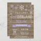 Rustic Winter Onederland Girl primeiro aniversario Invitation. Lavanda Lilac Roxo e Floco de Neve Branco. Primeiro Aniversário. Garota 1rua no Bairro Convidam. Fundo Rustic Wood. Para mais personalização, clique no botão "Personalizar" e use nossa ferramenta de design para modificar este modelo.