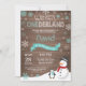 Rustic Winter Onederland primeiro aniversario Invitation. Snowman e Penguin. Aqua Teal Turquoise e Floco de Neve Branco. Primeiro Aniversário. Menino ou Garota 1rua Convidam. Fundo Rustic Wood. Preto & Branco. Para mais personalização, clique no botão "Personalizar" e use nossa ferramenta de design para modificar este modelo.