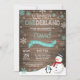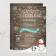Rustic Winter Onederland primeiro aniversario Invitation. Snowman e Penguin. Aqua Teal Turquoise e Floco de Neve Branco. Primeiro Aniversário. Menino ou Garota 1rua Convidam. Fundo Rustic Wood. Preto & Branco. Para mais personalização, clique no botão "Personalizar" e use nossa ferramenta de design para modificar este modelo.