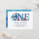 Adorável golfinho de aquarela com o primeiro convite de aniversário da cena de recife de coral submarino do oceano para o seu pequeno.