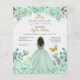 Orçamento Elegante Mint Dourada Butterfly Princesa Floral Quinceañera Quince Convite