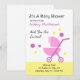 Convite de chá de bebê menina com fundo branco e desenho de carrinho de bebê. O cartão é completamente personalizável, você pode editar o texto e as cores tanto do texto quanto do design, até a cor do fundo pode ser personalizada. Possui letras simples e contemporâneas e acentos circulares para uma reunião divertida e casual que comemora aquele momento especial que está por vir. Se precisar de ajuda para personalizar este cartão, entre em contato com o designer em ArtByLiz@gmx.com e ele será personalizado para você sem nenhum custo adicional.