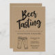 Convite para Prova de Cerveja -- Use para um evento anual, aniversário, festa de noivado, despedida de solteiro ou qualquer outro evento especial que você queira celebrar com uma degustação. Convide seus convidados com uma ilustração de brinde com copo de cerveja desenhada à mão em um maravilhoso fundo kraft rústico.