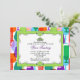 O vidro festivo, colorido, de várias formas e tamanhos, cria um pano de fundo para a camada de chic que mantém seu texto. O cartão é fácil de personalizar com seu texto, fonte, cor da fonte e escolha de seis tipos de papel.