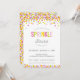 Sweet Baby Sprinkle Invitation em um esquema de cores rosa, azul, verde e amarelo brilhante, com pontos coloridos de aspersão de confetti. Este design é perfeito para um Baby Sprinkle, ou para qualquer celebração de Chá de fraldas com um tema de aspersão ou confetti.