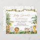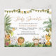 Este elegante convite da nossa coleção do Partido da Selva apresenta bébés bonitos com vegetação tropical, aliados a uma fonte moderna de caligrafia. Perfeito para uma selva ou festa segura.