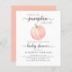 Um convite para chás de fraldas virtuais bonitinho, alegre e econômico, com a presença de "A Sweet Little Pumpkin Is On Your Way", escrito em uma mistura de tipografia moderna de cinza mole e roteiro de na moda, e uma aquarela pastel laranja de uma abóbora. Personalize o nome da mãe e os detalhes do chá em uma simples tipografia de cinza.