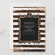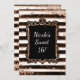 Black & White Stripes Rosa Dourado Invitação de Flocos.