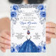 Marinho Azul Flores Silver Quinceanera Convite Mis Quince Anos, 15 Aniversário, Marinho Quinceanera Convite, Flores Azuis, Coroa Mis Quince Anos