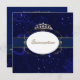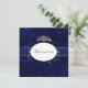 Convite de Aniversário da Quickceañera, com fundo azul marinho, com faíscas, espirros e estrelas. A área de texto azul escuro, na parte de cima, do convite, tem texto colorido de ouro pálido pronto para personalizar. Este convite elegante é acentuado com gráficos de fitas de aparência azul e de cebola de ouro, uma coroa de ouro e pérola, e uma banda de joias de tom de ouro adorável. Excelente convite para que sua aniversariante especial ame.