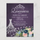 Quadro de chaleiras de ameixa roxa com cordas de luz rústicas, vestido de esparguete de diamante vintage e de tiara, e fazer de buquê de pincel e pastel azul, um belo convite para quinceanera. ++++++++++++++++++++ Fácil de personalizar com seus detalhes. Adequado para festas de aniversário de 15 de primavera ou de jardim de verão. +++++++++ LEIA ISTO ANTES DE COMPRAR! Este é um cartão de casamento de barato orçamentário impresso em uma folha de papel (cada folha tem um cartão). +++ Para obter a melhor qualidade de preço, nosso conselho é escolher o tipo de papel Semi-Gloss (é espesso o suficiente para ser usado para papelaria) +++ Se você precisar de envelopes, escolha a OPÇÃO ENVELOPE. ++ Verifique duas vezes todas as informações e a ortografia do seu texto porque você receberá exatamente o que você vê - ninguém mais verificará nada antes de imprimir. +++ Esta placa foi projetada para o tamanho de 4,5" x 5,6". Caso você escolha outro tamanho do cartão e o texto saia da página, tudo precisa ser corrigido antes de adicionar o produto ao carrinho. Peça ajuda ao Serviço de Design ao Vivo.