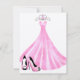 Um belo convite para qualquer princesa aos 15 anos. Este convite apresenta um vestido de bola rosa no centro com uma tiara joalhada no topo e calçados cor-de-rosa no fundo. Você pode personalizar todo o texto para sua Quinceanera. Este convite funcionaria bem para qualquer outra festa temática da princesa também.