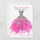 Convite de aniversário Glamoroso de Quinceanera com gráficos de um vestido cor-de-prata brilhante e rosa, sobre fundo branco. Personalize o texto rosa e preto para o dia especial da sua filha.