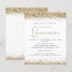 Dourada fronteira Glitter Quinceañera Convite.Um alternativo SMALLER de 4,5" x 5,6" amigável ao orçamento. Disponível em um STOCK de PLACA SEMI GLOSS 110 lb ou um STOCK de PAPEL THINNER SATIN FINISH 80 lb. Os envelopes são um extra opcional. As bordas de confete de falso ouro elegantes estão no topo e no fundo e também no verso. Quinceañera é feita no estilo moderno da caligrafia. Personalize facilmente o resto do texto para você.