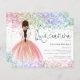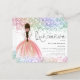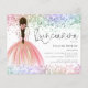 Chamada de Quinceanera Glitter Multicolor. Um alternativo de 4,5 pol x 5,6 pol com preço inferior. Disponível em um STOCK DE CARTÃO SEMI GLOSS 110 lb, que é a opção padrão (mais espesso para convites), OU um STOCK DE PAPEL THINNER SATIN FINISH 80 lb (ideal para gabinetes). Os envelopes são um extra opcional e são ligeiramente maiores que o tamanho da placa. Esmagadora elegância para sua Quinceanera com uma ilustração da visão de trás de uma garota com cabelos entrançados em um belo vestido de bola rosa e brilho colorido do arco-íris nos limites superior e inferior de cada lado. O cabeçalho principal está em um script de estilo de escrita manual definido e personaliza facilmente o resto do texto para seus detalhes.