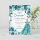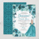 Elegante Teal Floral Quinceanera Convite Aniversário