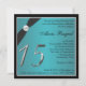 Este convite para Quinceanera na moda e preto tem uma fita preta e um arco impressos com um charme prateado gravado com tiara ou coroa. Há também um grande número de 15 em efeitos de prata. Se você precisar de outros itens correspondentes, envie um email para niteowlstudio@gmail.com.