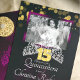 Convide seus convidados de Quinceañera com um belo convite para fotos violeta tiara. Este convite para Quinceanera de ouro brilhante tem envelopes lindamente correspondentes, etiquetas de endereço de retorno e cartas de agradecimento. Esta glamourosa design com uma gliteria número 15 é perfeita para a celebração especial de aniversário da sua garota. Personalize facilmente este design para a sua formatura, Bat Mitzvah, ou convite de aniversário! Este design traz uma bela flare para cores púrpura, rosa quente, burgundy ou tema ameixa.