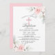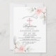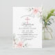 Design floral rústico simplesmente elegante em buquê de aquarela (cor d'água) verde pastel, cor-de-rosa-pincel, rosa, rosas de flores brancas/flores de cereja em fundo branco e letras de cinza escuras. Delicar convites BAPTISMO/CHRISTENING para garotas. Cruz com diamante falso no meio.