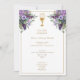 Apresentando um belo sacerdote católico tradicional preto e branco ou \ Ordenação de Deacon e/ou Convite de Aniversário com uma imagem de Chalice e Eucarista e flores roxas/lavandas.