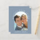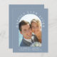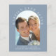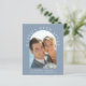 Elegante e orçamental, elopeia azul empoeirada ou anúncio privado de casamento e convite de recepção. A frente mostra sua foto do dia de casamento em um quadro de arco e "Feliz Sempre Depois" em uma elegante tipografia branca. Adicione seus primeiros nomes, data do casamento e local. Ao contrário, personalize seu anúncio e convite e adicione seus nomes em um script semelhante a assinatura.