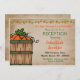 Este convite temático de outono é perfeito para uma recepção informal após o casamento. O design inclui uma cesta de abóboras, uma linha de flores de outono e um fundo desgastado.