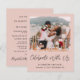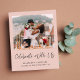 Elo cor-de-rosa com orçamento favorável ou anúncio de casamento menor e recepção de casamento/convite de festas posto. A frente mostra sua foto, "Celebrar Conosco" em um roteiro chic e seus primeiros nomes, data de casamento e local em uma simples tipografia moderna. Ao contrário, personalize seu anúncio de casamento ou elopemento em mais detalhes, adicione uma recepção ou convite de festas e assine seus nomes casados em um roteiro semelhante a assinatura.