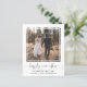 Simples e amigável elopeia de orçamento ou anúncio privado de casamento e convite para recepção de casamento postada. A frente mostra sua foto em um quadro quadrado recortado, "feliz para sempre" em um roteiro de na moda, com seus primeiros nomes, data de casamento e local na tipografia moderna. No verso personalize seu anúncio de casamento e seu convite de recepção, insira seu endereço no site do casamento para criar um código QR para os convidados digitalizarem suas fotos de casamento, todos os detalhes e para RSVP on-line, e adicione seus nomes em um roteiro semelhante a assinatura.