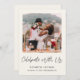 Elegante de creme leve/anúncio de casamento privado e convite para recepção de casamento postada. A frente mostra sua foto, "Celebrar Conosco" em um roteiro chic e seus primeiros nomes, data de casamento e local em uma simples tipografia moderna. No verso, personalize seu anúncio de casamento, insira o endereço URL do site de casamento para criar um código QR para seus convidados pesquisar mais informações e RSVP on-line e adicione seus nomes casados em um script semelhante a assinatura.