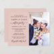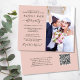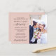 Um elopemento cor-de-rosa com orçamento favorável ou anúncio privado de casamento e convite de recepção que apresenta a sua fotografia e "Feliz Nunca Depois da Festa" numa mistura de simples tipografia e um roteiro chic com pestanas. Personalize seus detalhes de festa ou recepção e adicione seus nomes em um script semelhante a assinatura. No verso, insira o endereço de URL do seu site de casamento para gerar um código QR que seus convidados podem digitalizar para RSVP on-line.