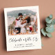 Lelopeia de creme leve e anúncio de casamento menor e recepção de casamento postada ou convite de festas. A frente mostra sua foto, "Celebrar Conosco" em um roteiro chic e seus primeiros nomes, data de casamento e local em uma simples tipografia moderna. No verso, personalize seu anúncio de casamento ou elopemento em mais detalhes, adicione uma recepção ou convite de festas e assine seus nomes casados em um roteiro semelhante a assinatura. Este papel semirbrilhante do orçamento é semelhante em peso ao papel fotográfico. Uma versão tradicional de estoque de cartão grosso também está disponível (mensagem para o link).
