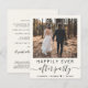 Lança-creme leve ou anúncio privado de casamento e convite para recepções de casamento. A frente mostra sua foto, "Feliz Festa de Sempre" em uma mistura de simples tipografia e um roteiro de na moda com balsas e seus primeiros nomes e data de casamento ou recepção unidos por um coração. No verso, personalize seus detalhes, insira seu endereço no site do casamento para criar um código de QR para os convidados digitalizarem suas fotos de casamento, todos os detalhes e para RSVP online, e adicione seus nomes em um roteiro semelhante a assinatura. Este papel semirbrilhante do orçamento é semelhante em peso ao papel fotográfico. Também está disponível uma versão maior do estoque de cartão tradicional 5x7 (mensagem para o link).