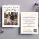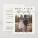 Lança-creme leve ou anúncio privado de casamento e convite para recepções de casamento. A frente mostra sua foto, "Feliz Festa de Sempre" em uma mistura de simples tipografia e um roteiro de na moda com balsas e seus primeiros nomes e data de casamento ou recepção unidos por um coração. No verso, personalize seu anúncio de casamento e seu convite de recepção, insira seu endereço no site do casamento para criar um código QR para os convidados digitalizarem suas fotos de casamento, todos os detalhes e para RSVP on-line, e adicione seus nomes em um roteiro semelhante a assinatura. Este papel semirbrilhante do orçamento é semelhante em peso ao papel fotográfico. Também está disponível uma versão maior do estoque de cartão tradicional 5x7 (mensagem para o link).