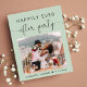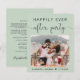 O chic sage, elopeio amigável ao orçamento ou anúncio e recepção particulares de casamento ou após convite de festas que mostra sua foto, "Felizmente Nunca Depois da Festa" em uma simples tipografia moderna e um roteiro de caligrafia com picos e seus nomes e data de casamento. No verso, personalize o seu anúncio e adicione os detalhes do convite da parte ou recepção e os seus nomes num script semelhante a assinatura.