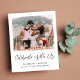 Elemento amigável ao orçamento de chic e anúncio de casamento menor e recepção de casamento postada ou convite de festas. A frente mostra sua fotografia, "Celebrar Conosco" em um roteiro elegante e seus primeiros nomes, data de casamento e local em uma simples tipografia moderna. No lado oposto, você pode personalizar seu anúncio de casamento ou elopemento em mais detalhes, adicionar uma recepção ou convite de festas e assinar seus nomes casados em um roteiro semelhante a assinatura. Este papel semirbrilhante do orçamento é semelhante em peso ao papel fotográfico. Também está disponível uma versão maior do estoque de cartão tradicional 5x7 (mensagem para o link).