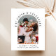 Elegante e orçamental ou anúncio privado de casamento e convite de recepção. A frente mostra sua foto de casamento em um quadro de arco e "Coma Bebida e Comemora" em tipografia serif clássica. Adicione seus primeiros nomes, data de recepção e local. No verso, personalize seu convite e adicione seus nomes em um script semelhante a assinatura.