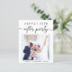 Elemento moderno e favorável ao orçamento ou anúncio de casamento privado e convite de recepção. A frente apresenta sua foto, "Feliz Festa de Sempre" em uma mistura de simples tipografia e um roteiro de tendências com supressões e seus primeiros nomes e data de casamento. No verso, personalize seu anúncio de casamento e seu convite de recepção e adicione seus nomes em um script semelhante a assinatura.