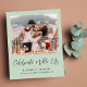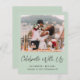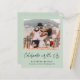 A elopeia verde de sábio amigável ou um anúncio de casamento menor e recepção de casamento postada ou convite de festas de celebração. A frente mostra sua foto, "Celebrar Conosco" em um roteiro elegante e seus primeiros nomes, data de casamento e local em uma simples tipografia moderna. No lado oposto, você pode personalizar seu anúncio de casamento ou elopemento em mais detalhes, adicionar uma recepção ou convite de festas e assinar seus nomes casados em um roteiro semelhante a assinatura.