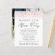 Eleição orçamental ou anúncio privado de casamento e convite de festas de recepção de casamento ou celebração. A frente apresenta o confete de brilho rosa dourado e "Felizmente, nunca Depois da Festa" em uma mistura de simples tipografia e um guião chic, moderno. Personalize seu anúncio e convite e adicione seus nomes em um script semelhante a assinatura. O verso mostra sua foto de casamento, seus nomes e a data do casamento.