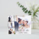 Elemento elegante e econômico ou anúncio privado de casamento e convite de recepção apresentando sua foto do dia de casamento sobreposta com uma faixa de três fotos quadradas menores, "Feliz Sempre Depois" em um roteiro moderno e seus nomes, data de casamento e local em uma simples tipografia. No verso, personalize seu anúncio de casamento e seu convite de recepção e adicione seus nomes em um script semelhante a assinatura.