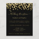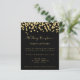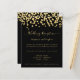 Confetti Glitter Dourado de Orçamento no Convite à Recepção de casamento de Fundo Preto. Um valor para o alternativo menor de 4,5 x 5,6 polegadas é usado como padrão para a opção de semigloscópio, que é recomendada para convites e é de espessura semelhante a um cartão postal. A opção satin é muito mais fina.