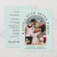 Elemento verde da casa da moeda, ou anúncio de casamento privado e convite de recepção. A frente mostra sua foto do dia de casamento em um quadro de arco e "Feliz Festa Depois" em tipografia elegante. Adicione seus primeiros nomes, data do casamento e local. No verso, personalize seu anúncio e convite e adicione seus nomes em um script semelhante a assinatura.