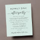 Um elopemento verde de menta leve e amigável do orçamento, ou um pequeno anúncio de casamento e convite de festas de recepção ou celebração. Na frente, "Feliz Festa Nunca Depois" é escrito em uma simples tipografia e um roteiro de na moda com pestanas. Personalize seu anúncio e convite de casamento e adicione seus nomes em um script semelhante a assinatura. O verso mostra sua foto favorita do casamento, seus nomes e data do casamento.