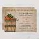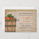 Convite Poste De Casamento. Este convite para o tema do outono é perfeito para uma recepção informal após o casamento. A design inclui uma cesta de abóboras, uma linha de flores caídas e um fundo angustiado.