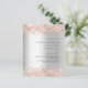 Um fundo de olhar mal prateado. Decorado com rosa dourado confetti. Personalize e adicione seus nomes e detalhes de recepção. 1 folha = 1 convite impresso de borda a borda.